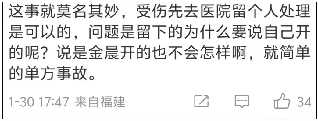 关于金晨道歉文中第一部分的内容,网友还是比较相信的,只是有人指出,金晨道歉文和通报说法关于三人伤情的说法不一致,存在一定漏洞。