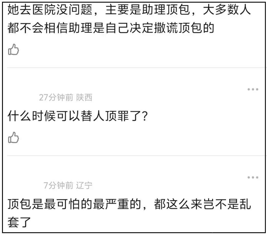 给明星当助理,不仅要跪下给他们穿鞋,还要主动顶包、主动骗保未遂、主动把自己送进去,这是助理吗?这是养了个死士吧!