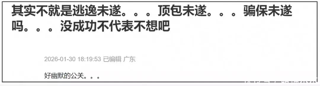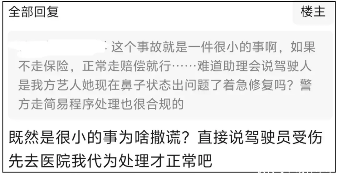 网友围观下来,只觉得虽然事不大、人也没事,但认真论起来,更准确的说法,是金晨肇事逃逸未遂、找助理顶包未遂、找保险公司理赔未遂,不能因为事没办成,就觉得她清清白白吧?