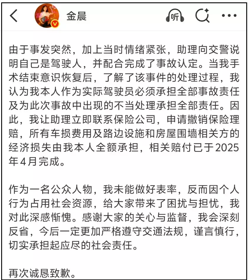 先放上金晨道歉原文,大致可以分为两个部分。