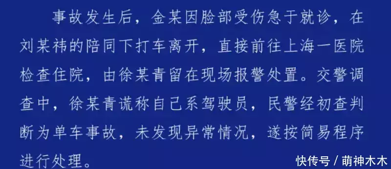 ——金晨只提到自己伤势严重,通报则是表示车上三人都是轻微受伤,既然都是轻微受伤,为什么助理能留下处理事故,金晨就不能等一等呢?