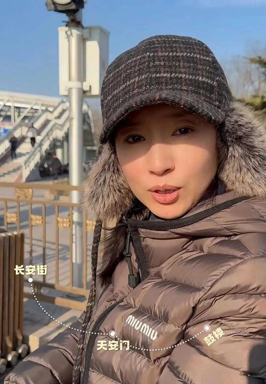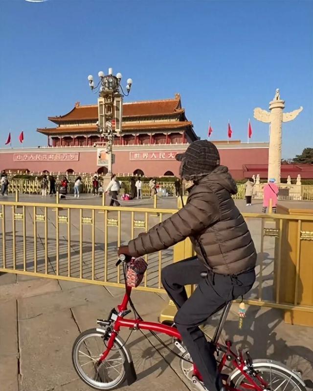 董洁换上保暖羽绒服,戴好毛茸茸的垂耳帽,骑着一辆小红车,从长安街一路到鼓楼,骑行路线像是精心画出来的一样。