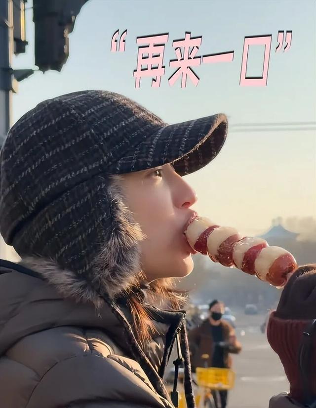等红灯时,她又掏出一串糯米糖葫芦,大口咬着吃。原本是骑行锻炼,结果一路吃一路停,自己都忍不住笑。