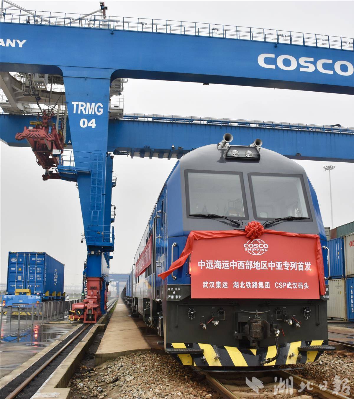 武汉—中亚铁水联运集装箱专列从阳逻成功首发